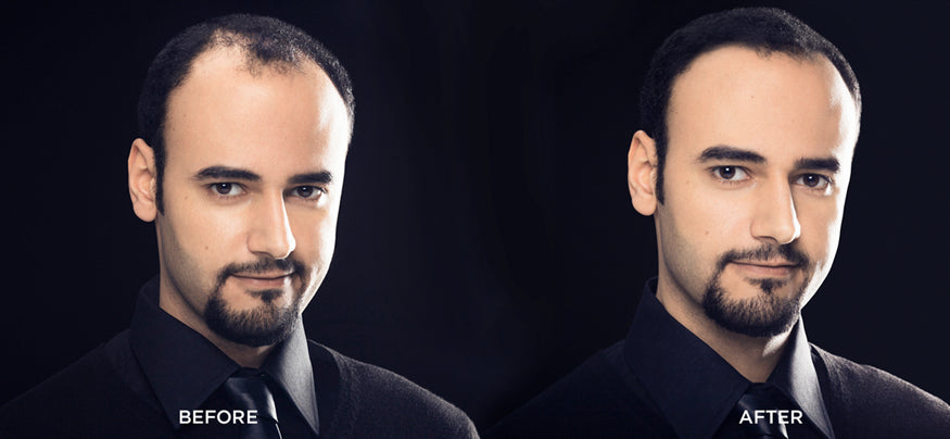 Jonathan has diffuse male pattern baldness with scalp show-through. He applies Toppik Dark Brown Hair Building Fibers to fill out thinning areas and gain the look and feel of a full head of hair, in just 24 seconds.