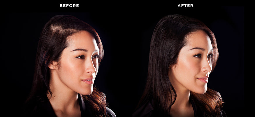 Using the Toppik Spray Applicator with the Toppik Fibers bottle gives you more precision in order to conceal localized areas of thinning, like Melina's part. To strengthen the bond between Toppik Fibers and existing hair , while still maintaining a softer, flowing style like Melina’s, you can use Toppik FiberHold Spray..